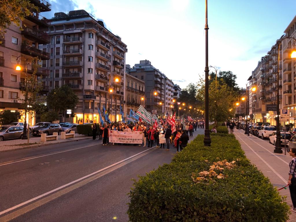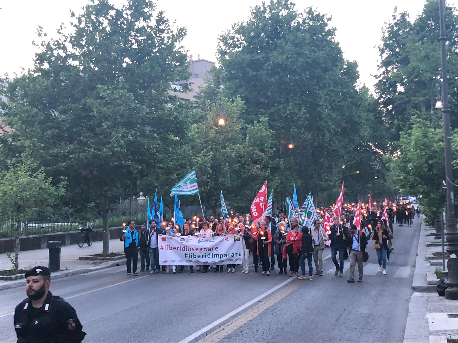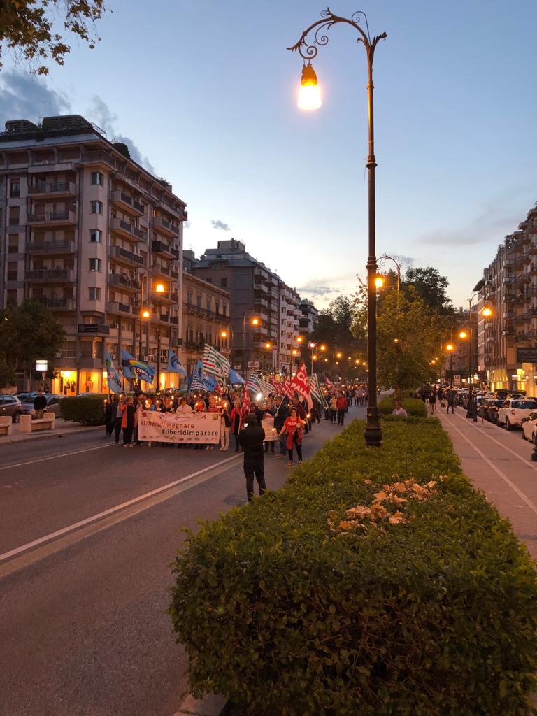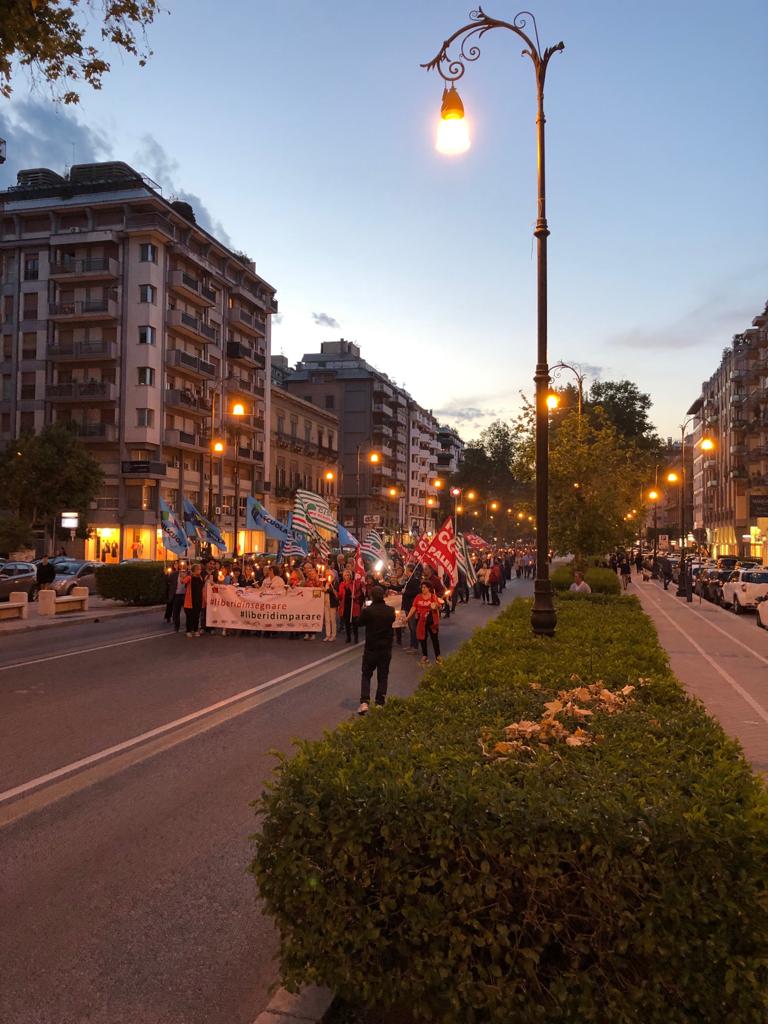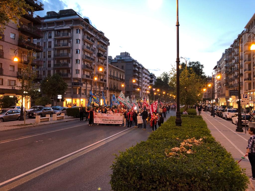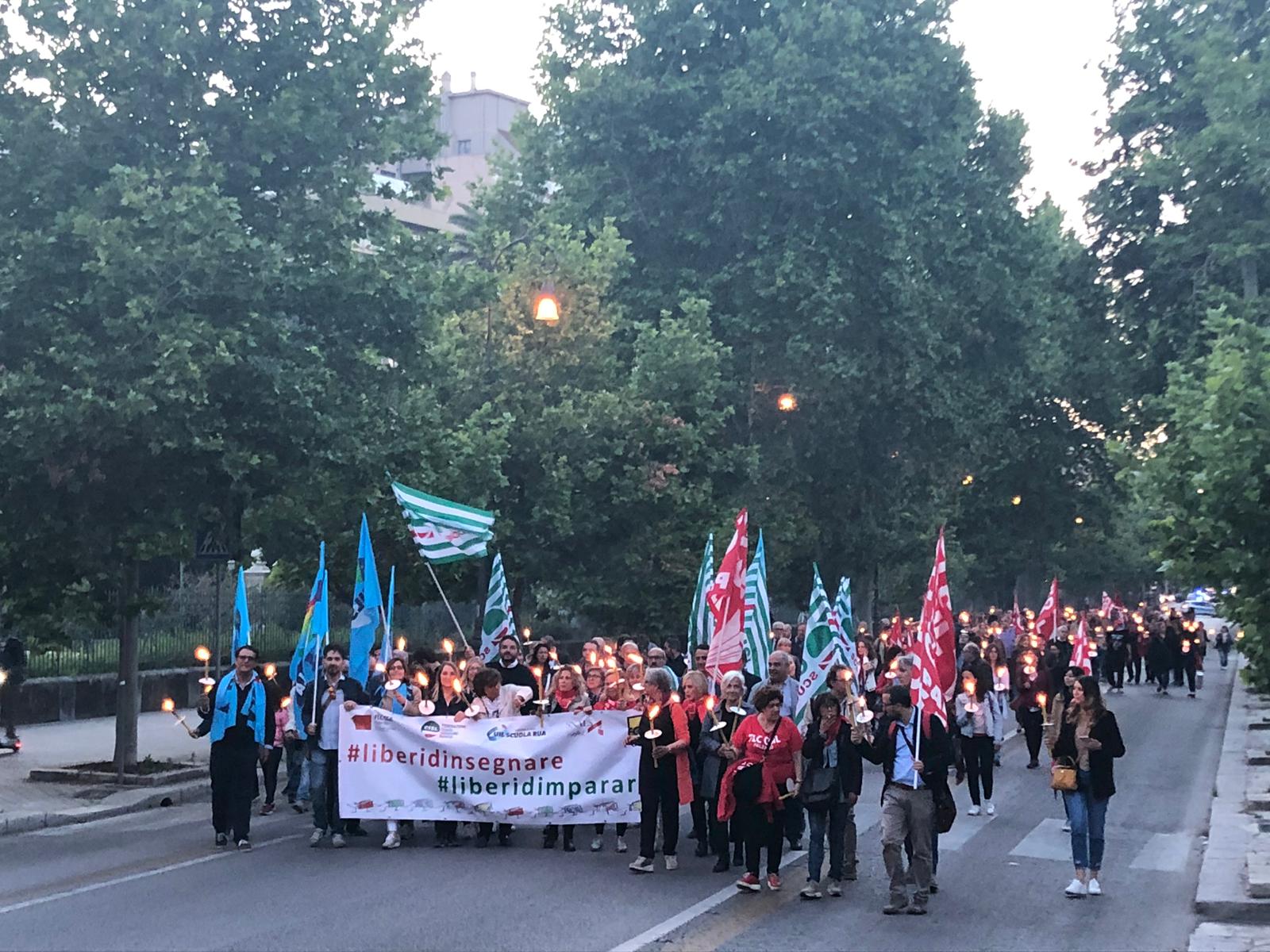 Una Partecipata e ed emozionante assemblea unitaria si è svolta nel pomeriggio del 24 maggio presso L’ITI Vittorio Emanuele III di Palermo, per affermare a gran voce i principi costituzionali della libertà d’insegnamento e della libertà di pensiero. L’ assemblea che ha visto la presenza dei rappresentanti nazionali delle sigle sindacali promotrici, di genitori, studenti e dirigenti scolastici delle scuole di Palermo, è stata animata da interventi di spessore che hanno ribadito la solidarietà all’insegnante Rosellina Dell’Aria punita ingiustamente per aver fatto il suo dovere. Durante l’assemblea e nel corso della fiaccolata – dichiarano i segretari regionali di Flc Cgil Pistorino, Cisl Scuola Bellia, Uil Parasporo , Gilda Lo Re e Snals Romeo, si è respirato un clima emozionante di grande unità, animato dalla consapevolezza di dover difendere fino in fondo alcuni principi fondamentali della scuola della Costituzione, la libertà di insegnamento, la libertà di pensiero e l’unità del sistema scolastico della Repubblica.
