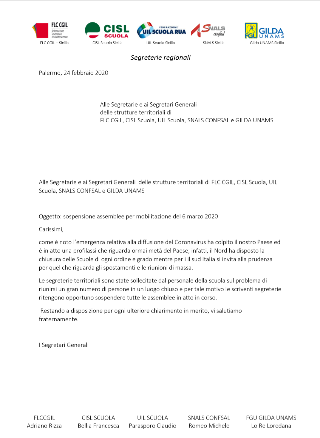 ScuolaSospensione Assemblee Scuola on 24 Febbraio 2020 1254 views facebookTwitter Google +LinkedIn sospensione assemblee (245 kB) previous article Bando TFA Sostegno Università di Palermo next article Chiusura istituzioni scolastiche della provincia di Palermo